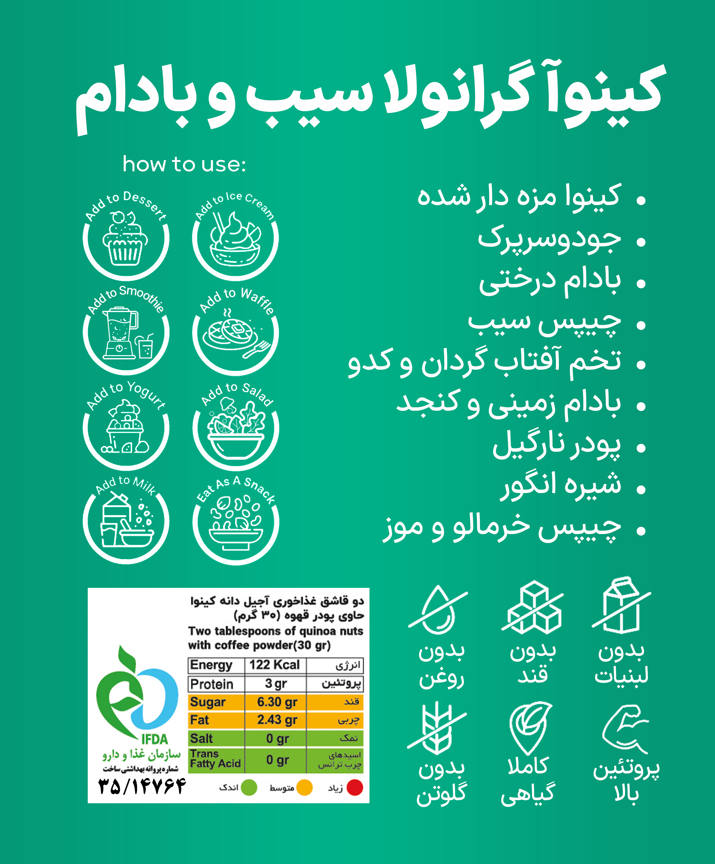 ویژگیهای اصلی گرانولا سیب و بادام: